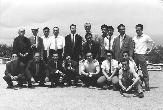 撮影年月不詳。文楽巡業先でのスナップ。 後列左より 明石康治(2代目太明藏の父)・○・竹本伊達大夫さん・故桐竹紋十郎さん・ 先代野澤錦糸さん・○・○・○・○・ 竹本十九大夫さん・吉田玉幸さん 前列左より 竹本文蔵さん・○・吉田玉松さん・吉田簑助さん・竹澤団六さん ・○・○・○・○印はお名前の分からない方です。すみません。
