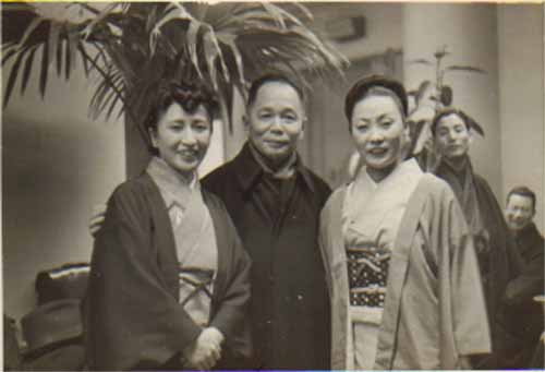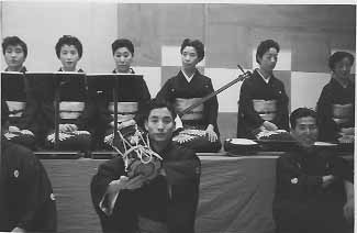 撮影年月不詳。舞踊会にて。 正面2代目望月太明藏。右隣は柏伊ノ助さん。